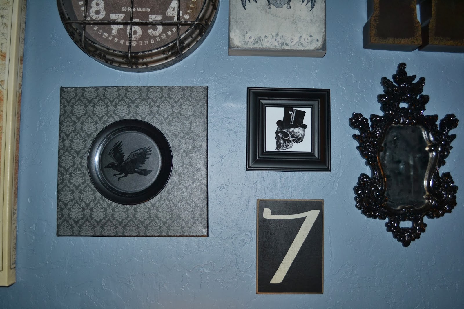 The number seven was a $1.99 find at Home Goods and that bat was also found there for $7. I loved them both. And they were the first items I had for my gallery wall: Halloween Edition.